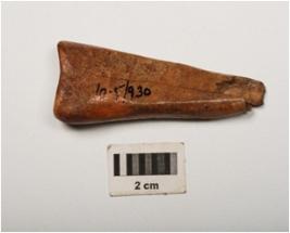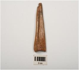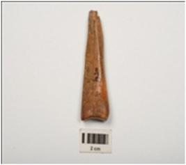 | Description / विवरण | Fragment of bone point, one end is thick, groove line an one side, smooth and polished surface. |