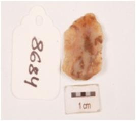 | Description / विवरण | Blade made of quartz with a mid-ridge on the dorsal side, bulb is prominent. |