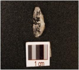| Description / विवरण | A crystal blade, prepared platform, distal end broken, and use-wear marks along the cutting edge. |