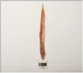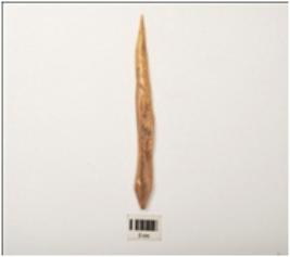 | Description / विवरण | Bone point, polished and glossy surface with a pointed end, broken from other thick end, light brown in colour and rectangular in section. |