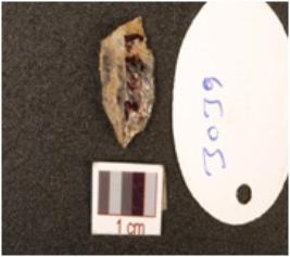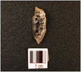 | Description / विवरण | A crystal lunate with ridge on dorsal side, triangular cross section, use-wear marks along the cutting edge and proximal end broken. |