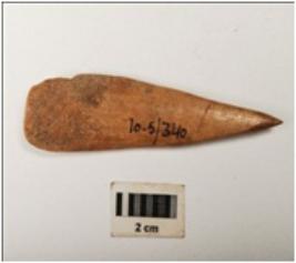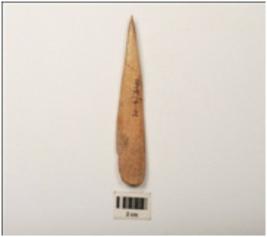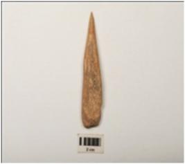 | Description / विवरण | Bone point, polished surface with one pointed and one broad end, rectangular in section. |