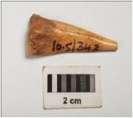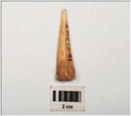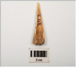 | Description / विवरण | Bone point, polished surface, partly broken at pointed end and other end is thick and broad. |