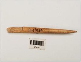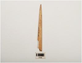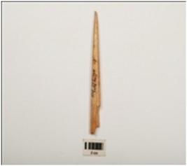 | Description / विवरण | Fragment of bone point, polished and smooth surface, cracks on surface. |