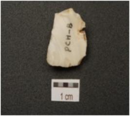 | Description / विवरण | Flake made on a chert flake scars on dorsal side, diffused bulb on ventral side and use wear marks along the working edges. |