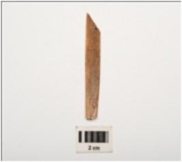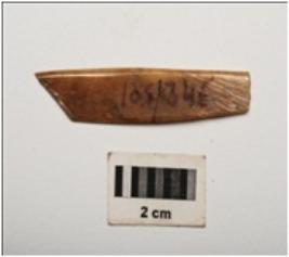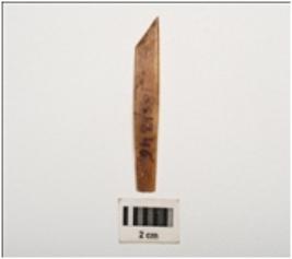 | Description / विवरण | Unidentified bone object, rectangular in shape, polished with flat surface on both sides, brown in colour and rectangular in section. |