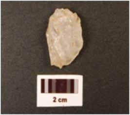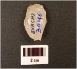 | Description / विवरण | A round scraper, made on quartz, irregular marks on edges, distral end is broken, bulb is absent on proximal end, dorsal and ventral sides are uneven. |