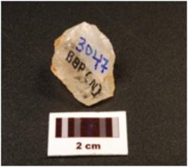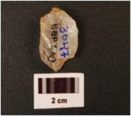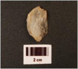| Description / विवरण | A round scraper, made on quartz, irregular marks on edges, distral end is broken, defused bulb on proximal end, dorsal side is uneven. |