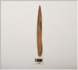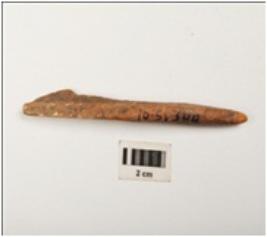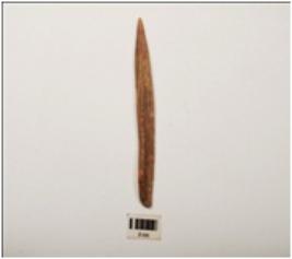 | Description / विवरण | Bone point, partly smooth surface with a pointed end, broken from other thick end, light brown in colour and rectangular in section. |
