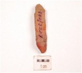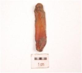 | Description / विवरण | Flake made on an end struck carnelian flake, prepared platfrom, diffused bulb on ventral side, blade scars on dorsal side. |