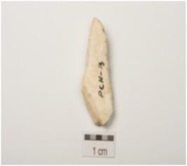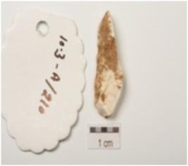 | Description / विवरण | A flake made on chert use wear mark along the cutting edges and diffused bulb on ventral side. |