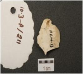 | Description / विवरण | A flake made on chert, diffused bulb on ventral and flake scars on dorsal side, use wear mark along the cutting edges. |