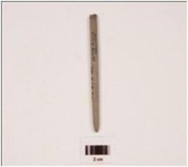 | Description / विवरण | A stone point with circular cross section polished surface and broken from both ends. |