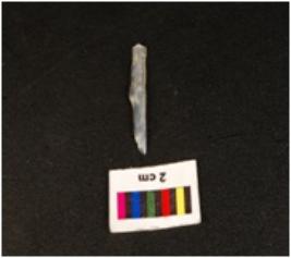 | Description / विवरण | Point with a mid ridge on dorsal side, triangular in section and pointed at distal end. |