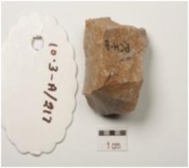 | Description / विवरण | A flake diffused bulb on ventral side, flake scars on dorsal side and use wear marks along the edges. |