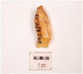 | Description / विवरण | Blade made on an end struck chalcedony flake, one lateral side blunted, other is sharp with retouches bulb and platfrom absent, raw material given heat treatment. |