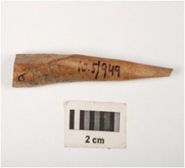| Description / विवरण | .Fragment of bone point, polished and smooth surface, groove line on one side. |
