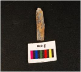 | Description / विवरण | Parallel side microlithic blade with single ridge on dorsal side, triangular in section, broken at distal end, bulb on ventral side, use wear mark along the cutting edges. |