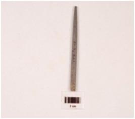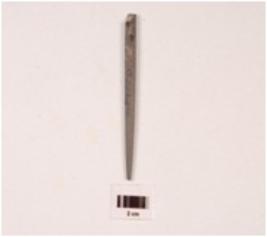 | Description / विवरण | Fragment of pointed arrow head stone, circular in section, greyish colour, smooth surface. |