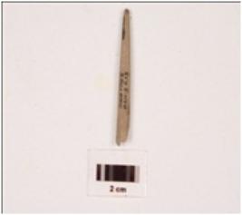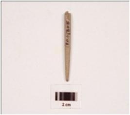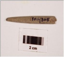 | Description / विवरण | Stone point with circular cross section, smooth and polished surface, one end broken. |