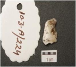 | Description / विवरण | A chert flake and use wear marks along the cutting edges. |