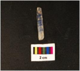 | Description / विवरण | Parallel sided microlith blade with double ridges on dorsal, trapezoid in section and use wear marks on cutting edges. |