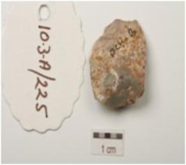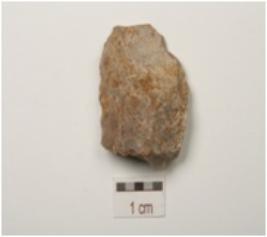 | Description / विवरण | A scraper made on a flake, bulb on ventral side, flake scars on dorsal side and use wear marks along the cutting edges. |