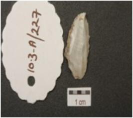 | Description / विवरण | A blade, diffused bulb on ventral side, blade scars on dorsal side and retouched edges. |
