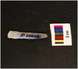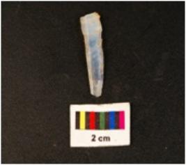 | Description / विवरण | Parallel sided microlith blade with double ridges on dorsal. Trapezoid in section and use wear marks on cutting edges. |