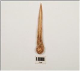 | Description / विवरण | Bone point, slightly broken pointed end, modified convex on top, groove line on one side, polished and smooth surface. |
