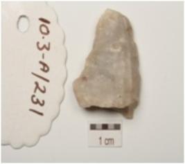 | Description / विवरण | A quartz scraper bulb on ventral side and blade scars on dorsal side and use wear marks along the cutting edges. |