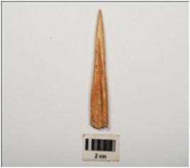 | Description / विवरण | Bone point, pointed one end, other end is broken, polished and smooth surface, groove line on one side. |