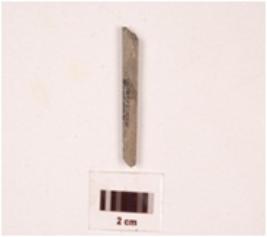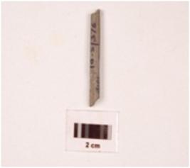 | Description / विवरण | Fragment of pointed arrow head stone, circular in section, greyish colour, smooth surface, damaged at both end. |