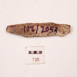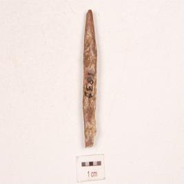 | Description / विवरण | A point made on charred bone, broken along both the ends, rectangular in section, polished surface, weathered condition. |