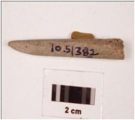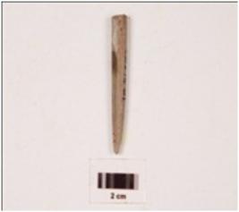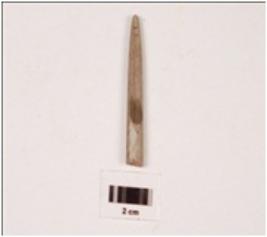 | Description / विवरण | A stone point with circular cross section, polished surface and broken from the thick end. |