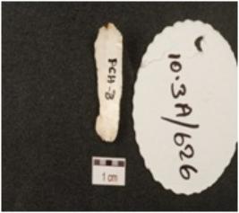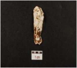 | Description / विवरण | A blade made on chalcedony, mid ridge on dorsal side, diffused bulb on ventral side and use wear marks along cutting edge. |