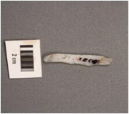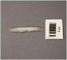 | Description / विवरण | Microlithic blade with double ridge on dorsal and blunt cutting edge. Trapezoid in section. |