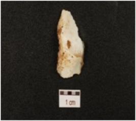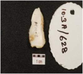| Description / विवरण | A blade made on chalcedony, ridges on dorsal side, cortex on one side end and use wear marks along cutting edge. |