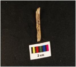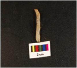 | Description / विवरण | Blade with a curved distal end and proximal end with diffused bulb use wear mark on one end, one balde scar on dorsal end, heat treated. |