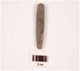 | Description / विवरण | Fragment of pointed arrow head stone, rectangular in section, greyish colour, smooth surface. |