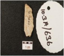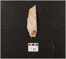 | Description / विवरण | A blade made on chalcedony, blade scars on dorsal side and sharp cutting edge. |