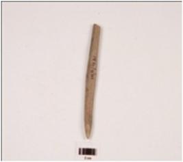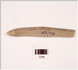 | Description / विवरण | A stone point with polished surface and broken from the thick end. |