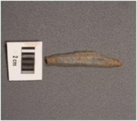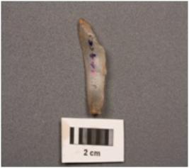 | Description / विवरण | Microlith backed point with double ridges on dorsal and tapering end. Trapezoid in section and use-wear marks on edges. |