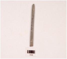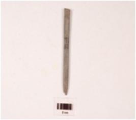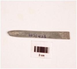| Description / विवरण | Fragment of pointed arrow head stone, plano-convex in section, greyish colour, smooth surface. |