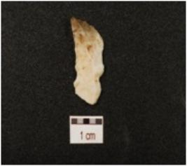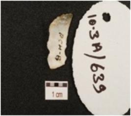 | Description / विवरण | A flake made on chalcedony, bladescars on dorsal side, prepared platform, pointed on distal end and use wear marks along cutting edge. |