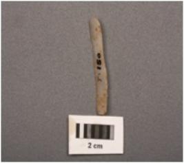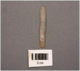 | Description / विवरण | Parallel sided microlithic blade with mid ridge on dorsal and triangular in section. Use wear marks on cutting edges. |