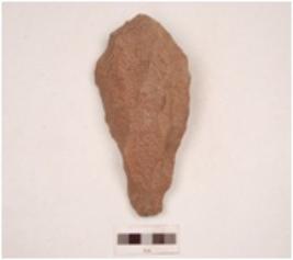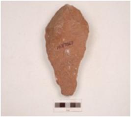 | Description / विवरण | Handaxe made on quartzite end struck flake, prepared platfrom, prominent bulb on ventral side, plano-convex in cross section and wavy working edge. |