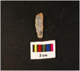 | Description / विवरण | Blade with blade scar on dorsal surface with use wear marks on both working edges, proximal end has positive bulb on ventral side, distal end broken. |