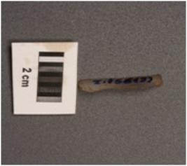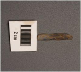 | Description / विवरण | Parallel-sided microlith blade with wavy mid ridge on dorsal. Triangualr in section and use-wear marks on cutting edges. |