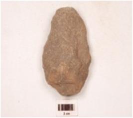 | Description / विवरण | Handaxe made on quartzite end struck flake, plano-convex in cross section, flake scars on both sides and wavy working edge. |